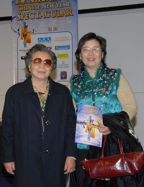 记者也在现场采访了几位中国人。林女士(Yuh-Jen Lin)是中文教师,她说:“我最喜欢鼓舞,我还喜欢『迎春花开』,蒙古『顶碗』舞也太棒了。”她的母亲则表示“整个节目都很专业”,又说:“我喜欢那几位歌唱家”,还询问那几位歌唱家来自何方。林女士提醒母亲:“我们看过新唐人电视台声乐大赛节目。”