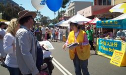 一个名叫索菲亚·波格·珀特(SOPHIA BONGER PONT)的女士在展位前和学员谈了很久。了解了真相后的她不但在征签表上签名支持法轮功,还表示终于找到了她非常想找寻的一个能使人平静祥和、积极向上的修炼方法。她想参加这个地区的下一个免费教功班,并当场请了英文版《转法轮》回家阅读。这个地区并不多见的中国老年人也走过来接下《九评共产党》等资料回去细读。