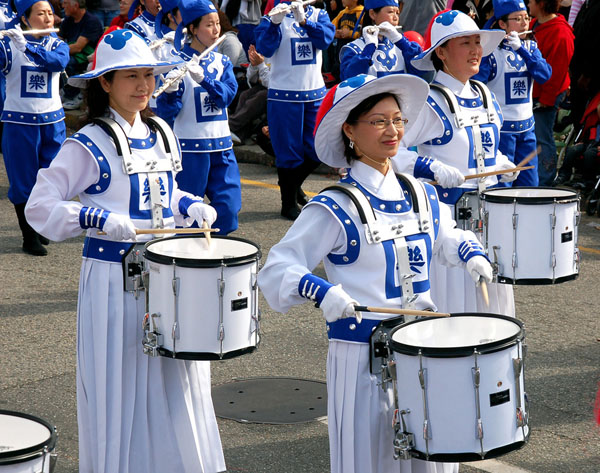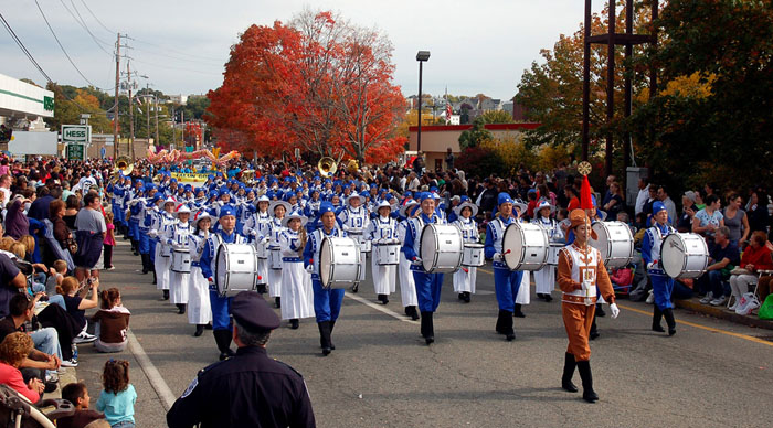 ![]() 应邀压轴罗州“秋之节”大游行的法轮功天国乐团。 |