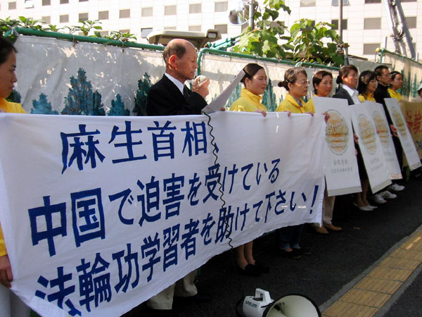 ![]() NPO法人日本法轮大法学会鹤园雅章代表呼吁日本首相麻生帮助制止中共迫害。 |