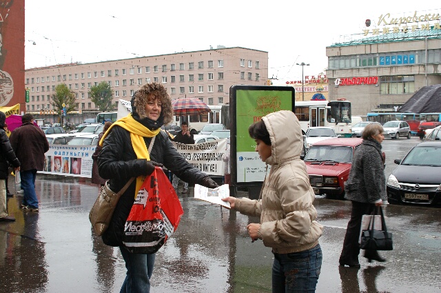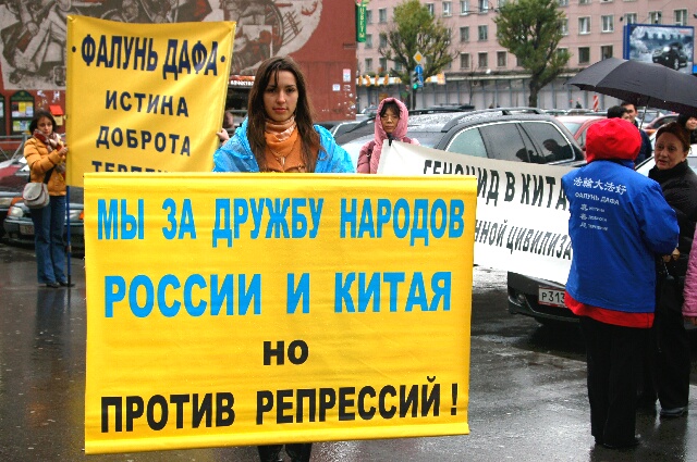 俄罗斯法轮功学员莫斯科街头讲真相(图)