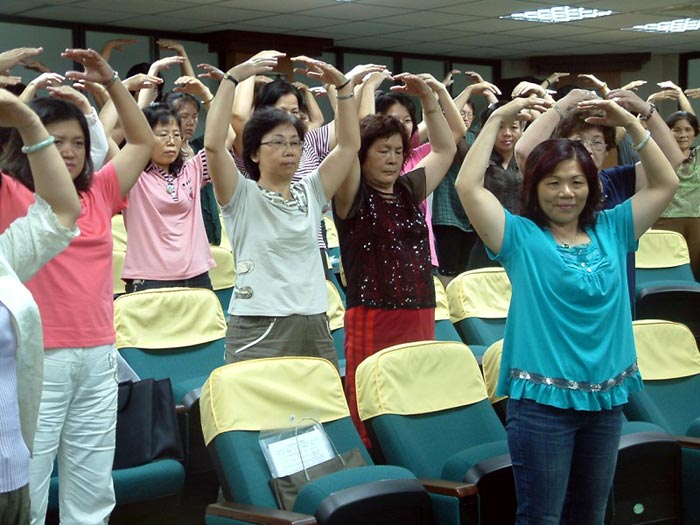![]() 台南县玉井区妇女成长学苑,参加者现场体验法轮功第二套功法──“法轮桩法” |