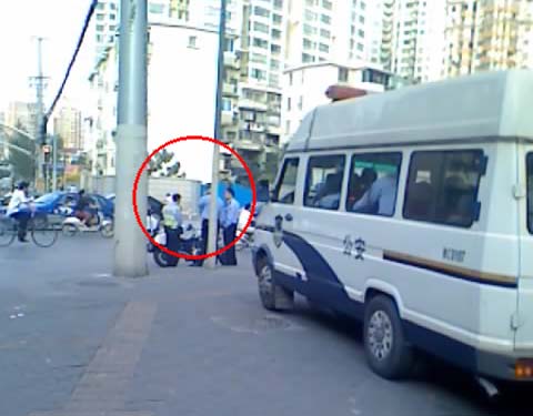 ![]() 法院对面宜山路和南丹路街角的巡视恶警 | ![]() 法院对面宜山路和南丹路街角的巡视恶警 |