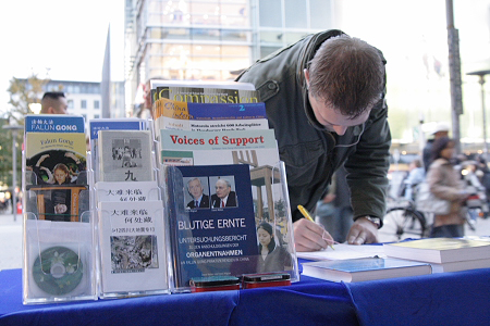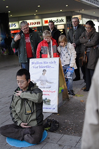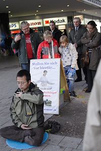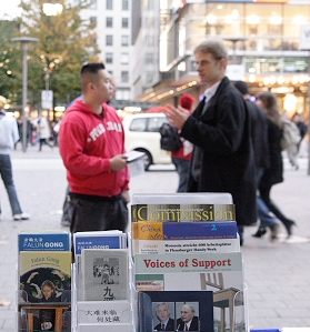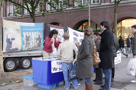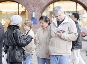 整个下午,有许多中国人经过法轮功学员的讲真相展位。学员向他们讲述了法轮功的一系列真相,并送给他们真相资料以了解详情。