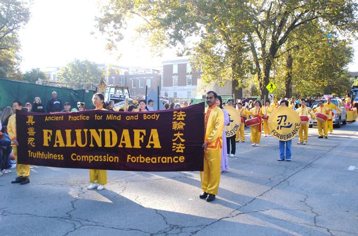 ![]() 法轮功学员参加密苏里大学-哥伦比亚分校二零零八年度的返校节游行 |