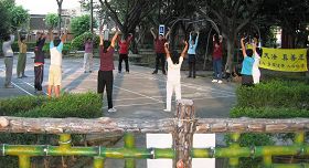 在台湾桃园的龙安公园,有一个法轮功的炼功点,炼功点的三、四十位学员老老少少不一,他们来自不同的地方、有着不同的职业,但是因缘的安排,让他们有机会在龙安公园的炼功点一同修炼法轮功。