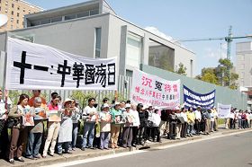 福冈法轮功学员中领馆前要求停止迫害(图)