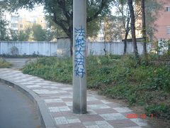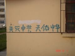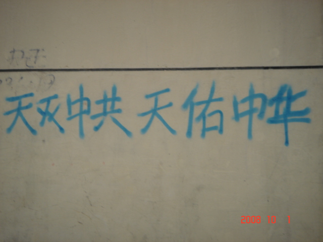 【明慧网二零零八年十月三日】“十一”这一天,中国大陆北方某城市出现大量天灭中共标语和法轮功真相、法办江泽民的标语。