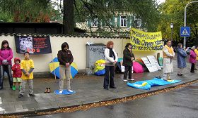 慕尼黑法轮功学员中领馆前抗议迫害(图)