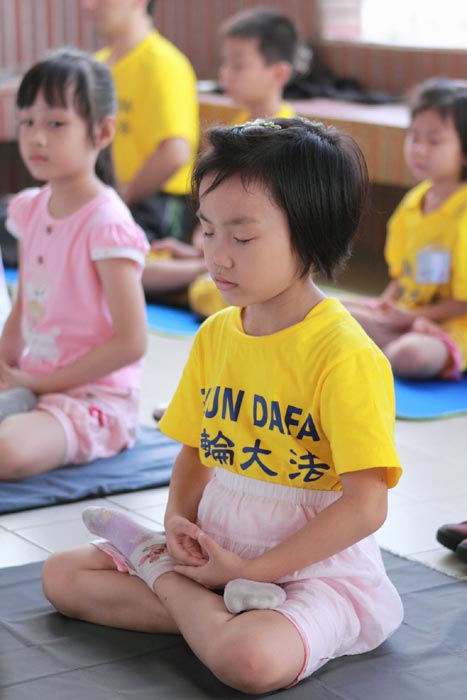 在上台背法比赛中,纹玉这个长得结实健康的小女孩,吸引了记者的注意,她背法时很纯熟,眼神特别专心认真,下课时小纹玉接受了记者的采访。纹玉,六岁,就读国小一年级,在幼稚园大班时,父母离异,与爷爷奶奶一起住,奶奶每天带她学法、炼功和背法,每星期六奶奶骑机车载她到嘉义明慧学校上课,风雨无阻。纹玉说:“那里阿姨很用心,教我们学法,炼功,生活礼仪,讲故事,玩游戏,很活泼,很好玩。”纹玉很喜欢去明慧学校。