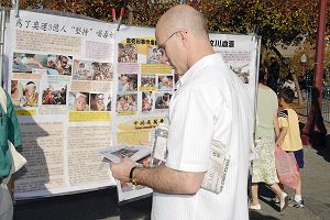 当天在花园角广场还举办了真相图片展,吸引了不少游客。从西雅图到旧金山出差的史蒂夫阅读了法轮功学员派发的《今日法轮功》真相材料。在了解到法轮功学员、中国著名民谣歌手于宙被迫害致死的故事后,他说:「这太可怕了。我完全支持你们。我们应该向中共政权施压,让它们改善人权。」