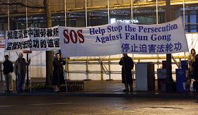 一位从美国中部到华府参加一个学术会议的专业人士也来到了会议所在地附近,他说自己也接到通知早上要到胡下榻的酒店表示欢迎,但没什么兴趣,就没有去,后来出于好奇就到这边来看看,就碰到了法轮功学员。这位专业人士说自己以前听到了很多关于法轮功的说法,但也不知道对错,但总觉的这么多人炼总不会一点道理都没有吧。