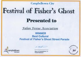 二零零八年十一月八日下午,澳洲悉尼堪普汤市政厅宣布法轮功团体荣获渔人节游行活动最佳文化奖。