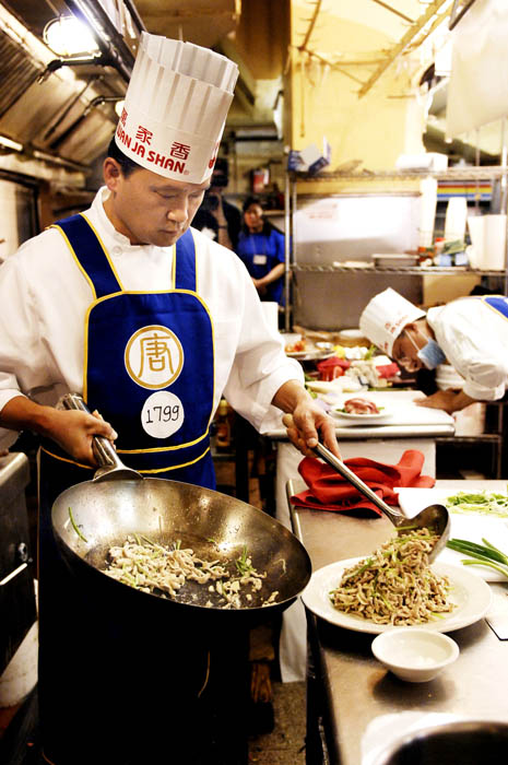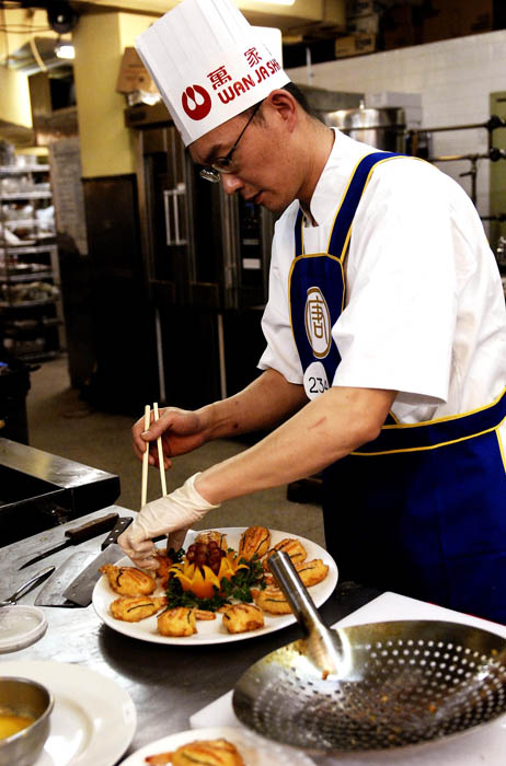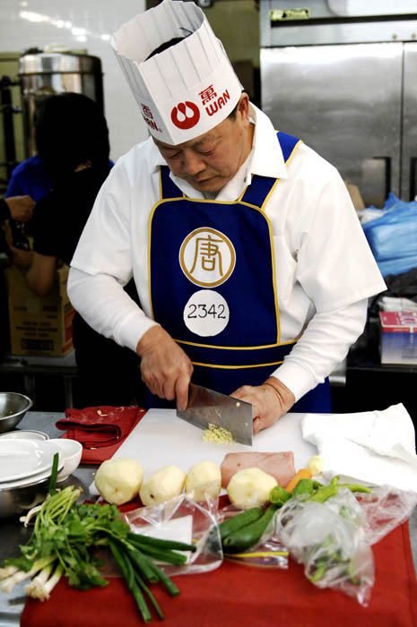 中国菜不仅讲究色、香、味、形;要做好菜,刀工、火候也是关键一环。入围决赛的纽约选手陈维良是东北沈阳人,有三十年的烹饪经验,他的自选菜是“拔丝地瓜”。他说,地瓜是很普通的材料,但是在拔丝时不碎,煮熟时还保持其形,这就考验厨师的刀功。