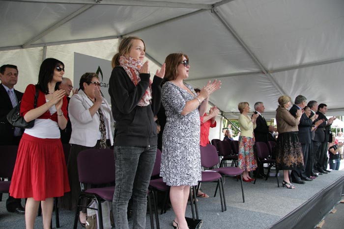 ![]() 主席台上的贵宾们对法轮功队伍报以热情的掌声 |