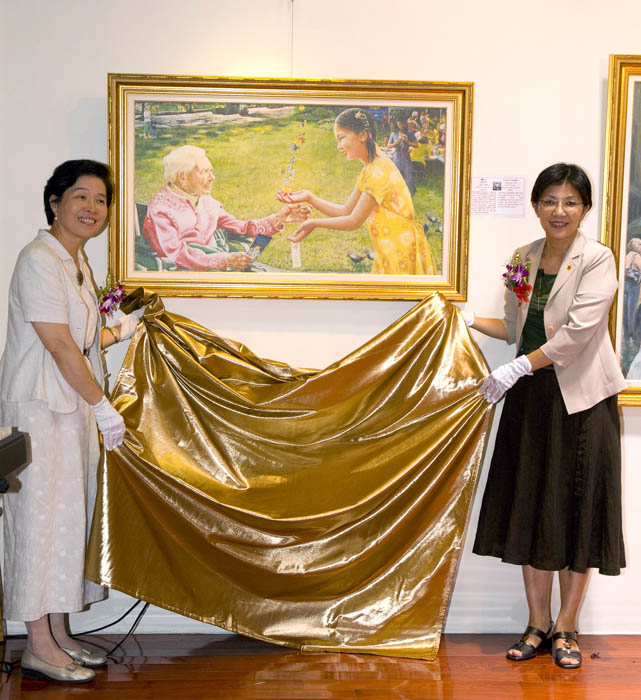 主办单位并选出三幅作品,邀请出席贵宾进行揭画仪式。这三幅作品分别是《礼物》、《孤儿泪》与《纯真的呼唤》。许多民众在看到《纯真的呼唤》时,纷纷发出赞叹的声音。
