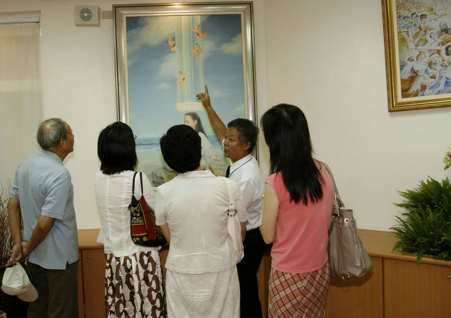 退休的明德国中辅导主任魏两岸则在这次美展中担任导览人员的工作,魏主任表示:「以前和同事讲真相时,感觉他们就这样听过去,但有这次真善忍国际美展的机会,我可以让他们亲自透过看画、为他们导览,更深刻的讲清楚真相。我也用电子信箱邀请了二十几所学校的校长,虽然不是都来,但我还会一一打电话邀请他们,希望在展览的十四天里,他们都可以透过画作了解真相。」