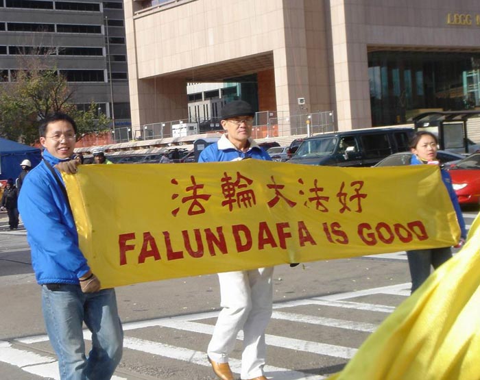 ![]() 在巴尔地摩市的游行中的法轮功队伍 |