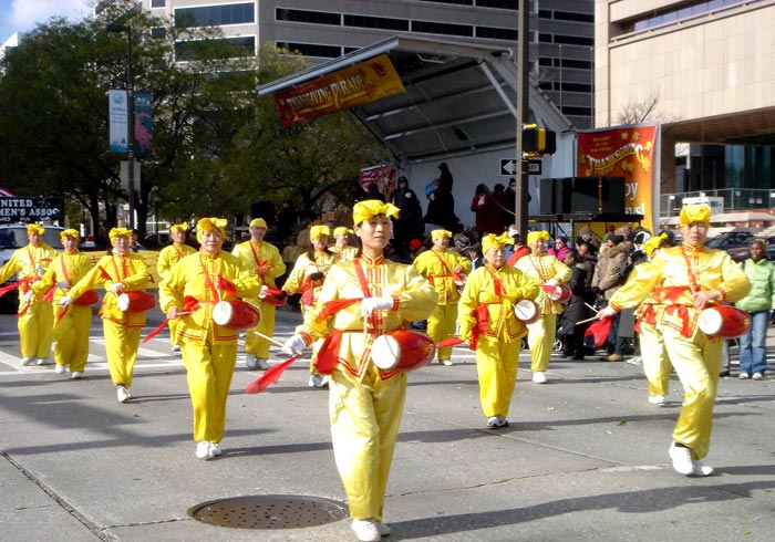 大华府地区法轮功学员组成的腰鼓队成为今年巴尔地摩感恩节游行的一个亮点,他们不但受到沿途观看游行的各族裔民众的欢迎,而且还被当地最大报——《巴尔的摩太阳报》做了特别报导。