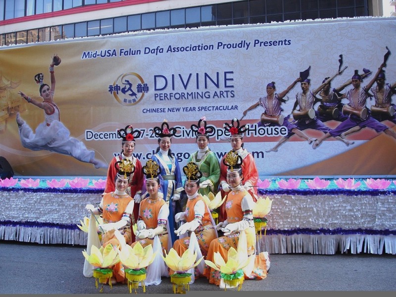 一年一度的芝加哥“麦当劳”感恩节游行是美中地区规模最盛大的游行,申请团体要经过组委会的严格筛选才能争取到亮相的机会。美中法轮大法学会自二零零三年首次参加芝加哥感恩节游行以来,年年都获邀加入表演。今年法轮功的游行队伍是以印有“法轮大法”、“真、善、忍”和“大唐”的旗队打头阵,由仙女和莲花点缀的神韵晚会宣传车紧随其后。