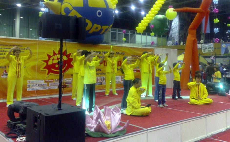 俄罗斯儿童体育王国博览会是集儿童游戏、文化娱乐、体育运动和军事体育等为一体的大型综合儿童盛会。展会期间,来自莫斯科和其它城市的小朋友在父母和长辈的带领下,每天上午十点之前就早早的等在展馆门口。展馆区内人头涌动,热闹非凡。俄罗斯法轮功学员借此机会向人们介绍以“真善忍”为原则的法轮大法,深受人们欢迎。仅十一月一、二日两天时间,就派发出去各种真相资料近一万份,现场教做和散发纸莲花上千个。
