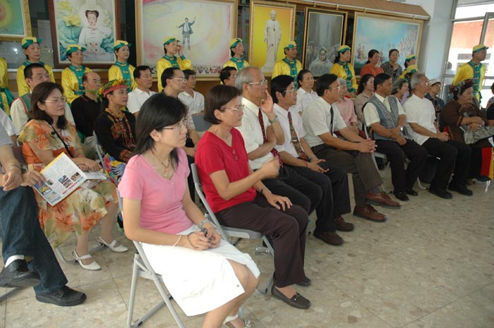 口社国小校长石进益表示,一直没有机缘接触法轮功,今天来参观画展,看到画中人物栩栩如生,令人感动,除了有丰富的艺术内涵外,也真切的把中共迫害法轮功的事实完全的呈现出来。他现在对法轮功有更深的了解,并向赛嘉国小校长杨秋南请教要如何修炼这一法门。