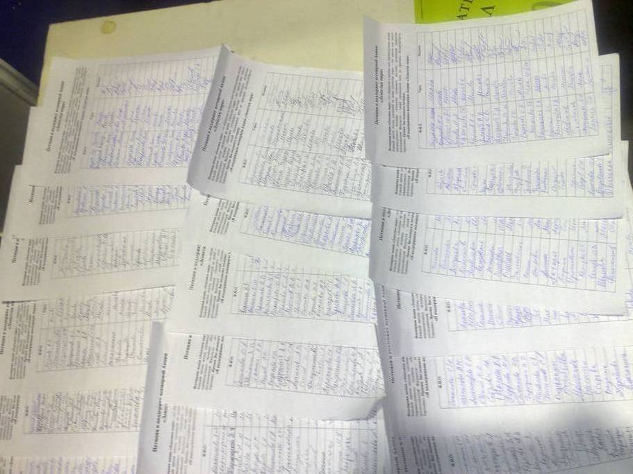 ![]() 学员们收集到大量支持法轮大法的签名 |