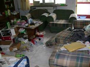 二零零八年七月九号早上六点左右,被迫流离失所长达五年多的孔茜及母亲李熙云,在潍坊电力三公司宿舍租住房屋内,被一自称是“看电表的”女人骗开门后,邪党恶徒蜂拥而入将其母女绑架。随后恶人对其住所进行了两次非法查抄,室内被抄的一片狼藉(见下图)。抢走电脑三台,刻录机一台,打印机一台及大法书籍和资料,所有值钱的东西都被抢走,价值约合人民币二万余元。