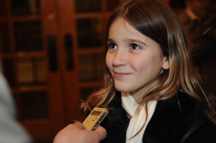 在学校上七年级的Gabrielle Schibo是一个可爱的小姑娘,在演出结束后她愉快的接受了采访,她说妈妈到过中国,很喜欢中国文化,她们全家是在报纸上看到了广告后就买票来看。她说:“这个演出很神奇(amazing),表演的非常好,很好的体现了中国文化。”她说自己最喜欢表现质朴、欢快、充满活力的藏族青年们的舞蹈《雪山欢歌》,服装非常美,音乐也很精彩。她说也很喜欢《金猴降妖》中的孙悟空。Gabrielle最后说自己会把这个演出介绍给所有的朋友。
