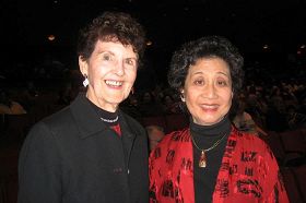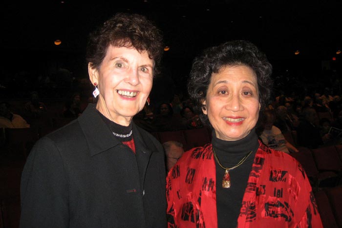 ![]() 二零零八年十二月二十七日,咨商心理师文蜜(Winmi)(右)与伊莲恩索(Elaille)(左)观看了神韵国际艺术团在美国圣地亚哥市政剧院的演出 |