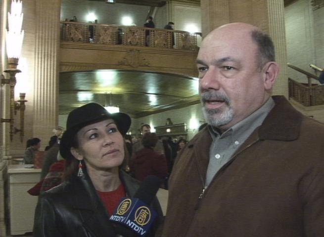 艾博先生(Apple)经常和中国做生意,并在中国拥有工厂,在接受记者采访时第一句话就是:“是我在中国大陆的一个营业代表告诉我神韵演出的,其实这是我第二次来观看芝加哥的演出,我最大的心愿就是希望有一天这场演出能够在中国大陆上演。”