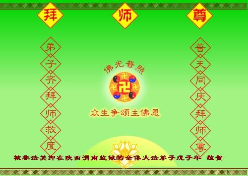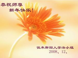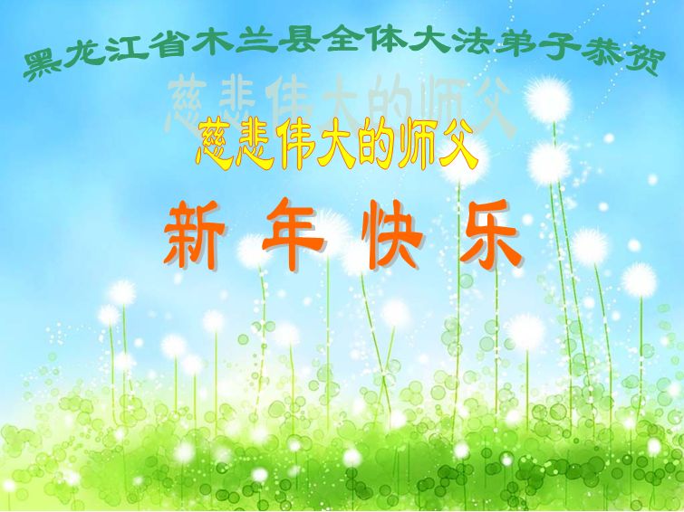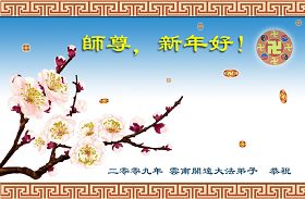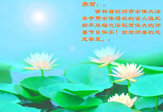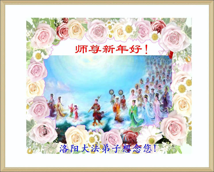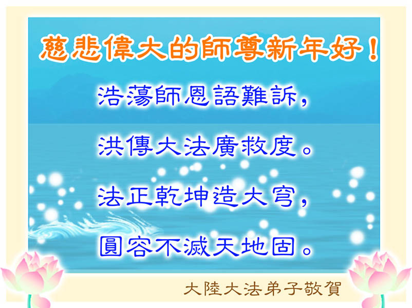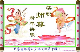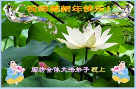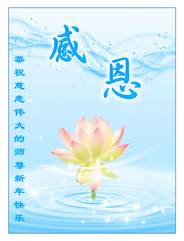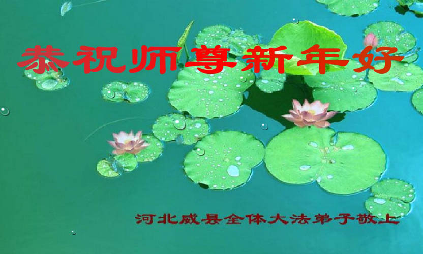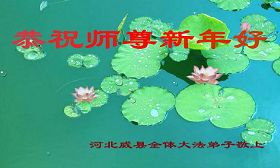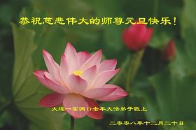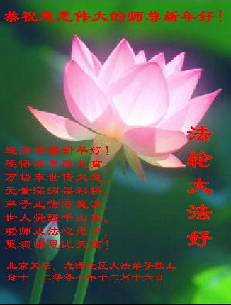 新年来临之际,怀着一份感激的心情,代表我们地区全体大法弟子向师父发出最衷心的祝愿:师父新年好!我们一定不忘师尊嘱托,努力做好三件事,救度更多众生!