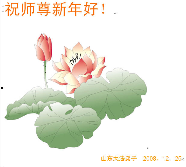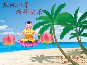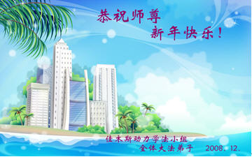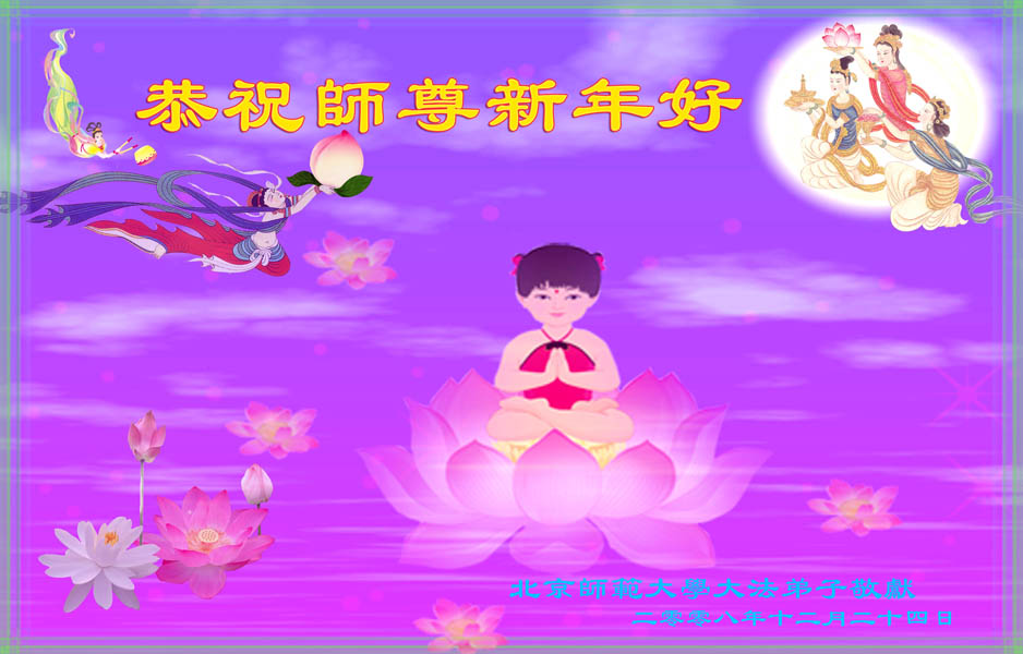 敬爱的师尊:2009新年来临之际,淮北市全体大法弟子恭祝您新年快乐!愿师尊在新的一年里多一些欣慰,少一些操劳!