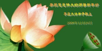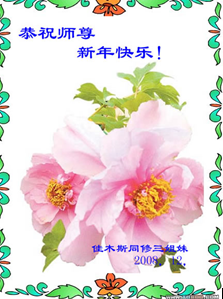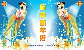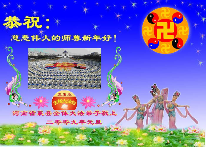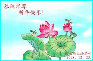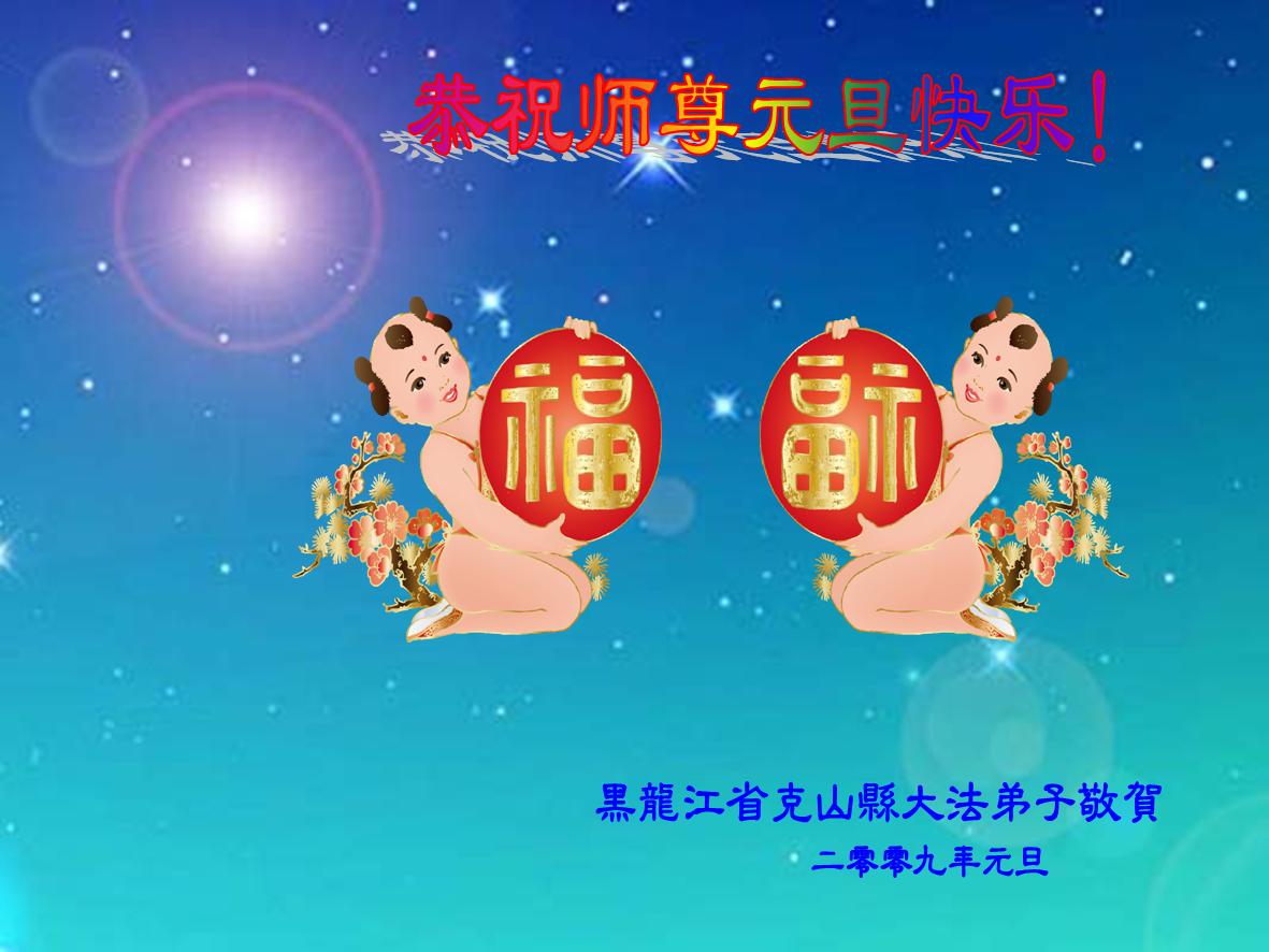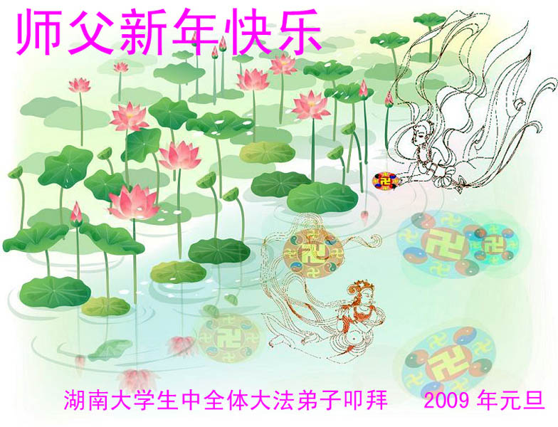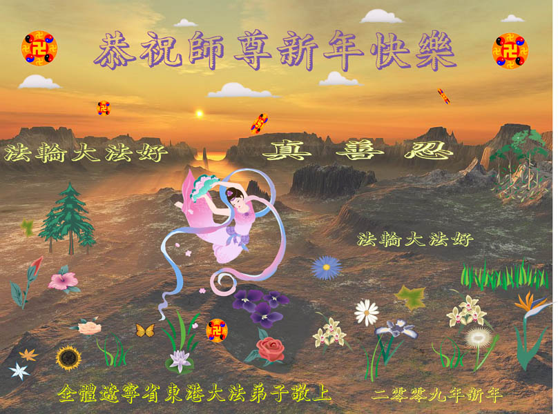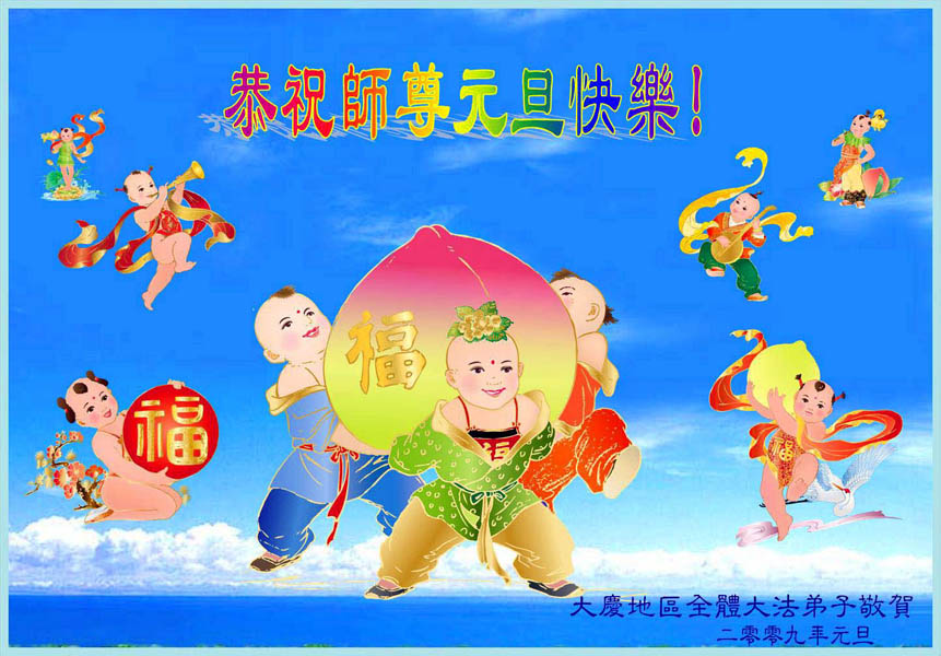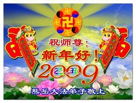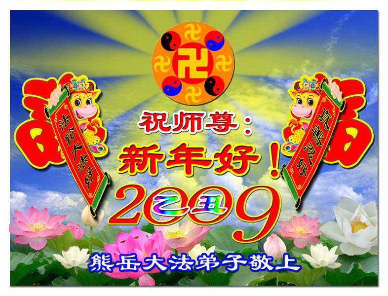 值此2009年新年来临之际,沈阳全体大法弟子恭祝师尊新年快乐!请师父放心,在新的一年里,沈阳全体大法弟子一定会做的更好,救人更多,路走的更正,不负师尊的苦度,不负众生的期待。