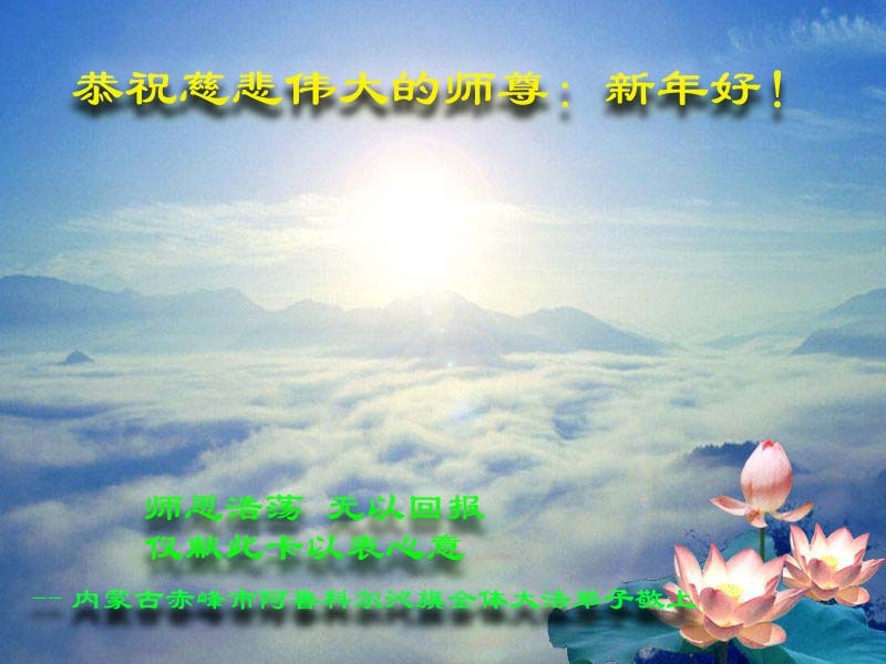 内蒙古乌兰察布市全体大法弟子向师父问好!恭祝慈悲伟大的师尊二零零九年新年快乐!