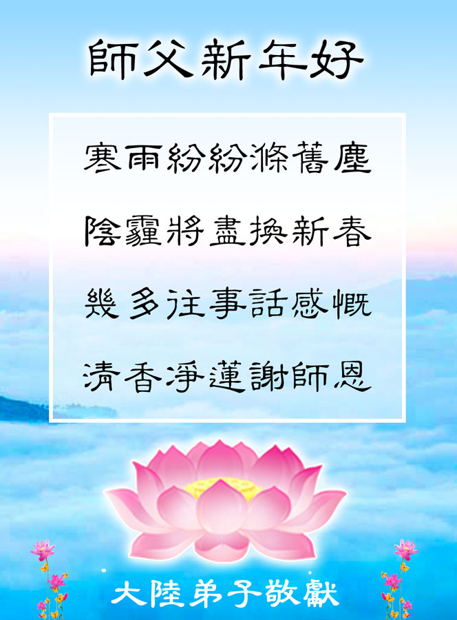 祝:师尊新年好!我们一定跟上正法進程,救度众生,不辜负师尊的慈悲救度!