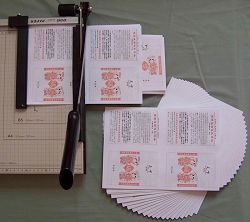 有同修在明慧网上介绍的自制印章的方法,经试验都是很好的方法。就是刻刀的问题,因为是橡皮印章,需要的刀要非常锋利。在一般文具商店买的都不太好用,可以到医疗器械商店购买手术刀,这一般是刀柄和刀片分别卖的,可以根据自己的爱好和需要选一种刀片,再买与之相配的刀柄就可以了,我用的是23号的刀片,明慧网上介绍的刻刀我看好象也是23号的。一个刀柄加上一袋刀片(10个)不足10元。