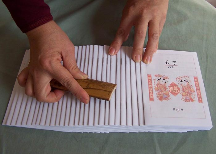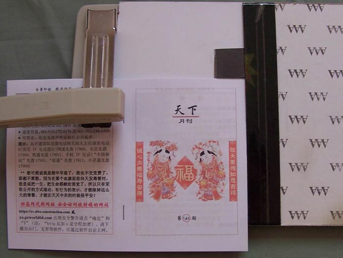 装订《九评》书时,书钉不回弯,总有一边订不透,还以为是书钉质量不好,细思量,为何另一边能订透,于是找来防止皮肤干裂的凡士林油或唇膏,用其将钉书器的书钉打弯回折的部份涂上凡士林油,过一会儿后再订,基本就好使了,原来是书钉落底回折的时候,摩擦力太大,书钉不能回折,钉书器的该部件用久了老化或生锈。遇到此麻烦的同修不妨试试。