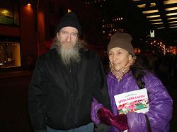 ![]() 现已退休的六十四岁的纽约居民伯克·豪克(BIRK HAUK)与女友伯尼拉(BONILLA)观看了三十一日晚的华人晚会。 |