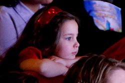 坐在记者旁边的Mary Rose是位作家,她带着上五年级的儿子Jimmy Gummerson前来观看新唐人华人新年晚会。每一个节目,都看到他们投入的鼓掌。