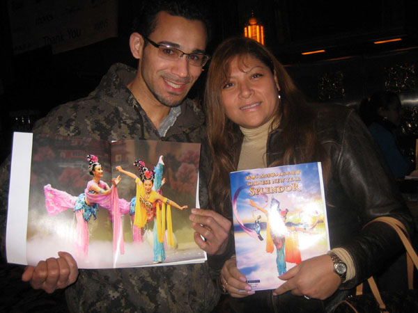 终场起立鼓掌的黛安(Dianne)任职于一家知名食品公司的亚洲顾问部门,她和丈夫彼得(Peter)第一次观赏全球华人新年晚会。她说,看了节目后深受启发(very inspiring),她喜欢《水袖》中曼妙的中国舞蹈。