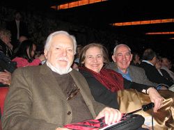 希腊雅典大学的医学教授Andreas Dsoudsos(左一)看了神韵艺术团的表演后,说:我认为这是我至今看过的最好的演出。 |