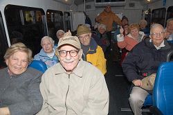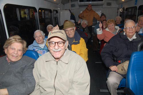 ![]() 老人们在“新年晚会专车”上赞叹神韵演出成功。 |