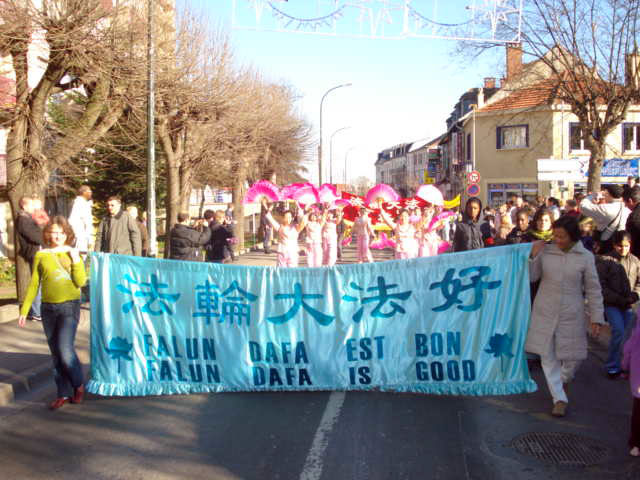 【明慧网二零零八年二月十三日】诺瓦西勒冈市坐落在法国巴黎东部郊区。二零零八年二月十一日(阴历正月初四),人们迎来了一年一度的中国新年游行。