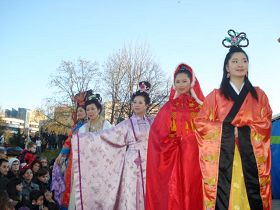 ![]() 法轮功学员的中国历代服装表演受到了在场观众的喜爱 |