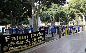 集会结束后,浩浩荡荡的游行队伍开始从市政厅走向洛杉矶的中国城。美西法轮大法心得交流会将在二十四日举行。