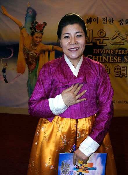 ![]() 韩服专家朴述女对神韵精彩的演出报以热烈掌声 |