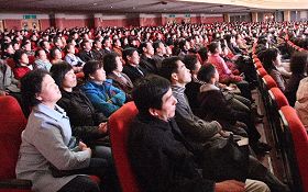 ![]() 韩国首尔第三、四场,观众聚精会神的观看神韵晚会演出 |
