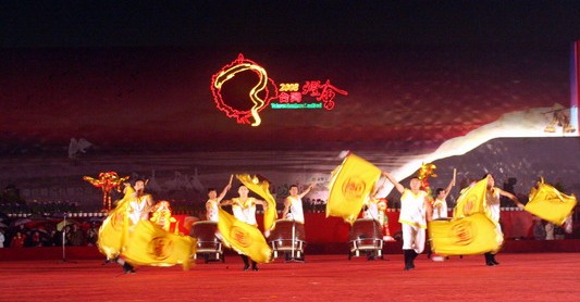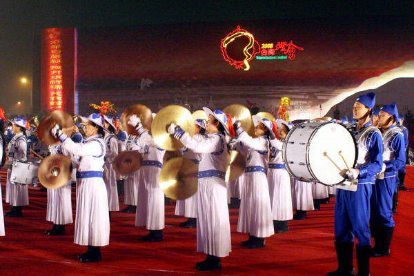 ![]() 天国乐团参与二零零八台湾灯会舞台节目的演出,身着中国古装、手持西洋鼓乐器,中西合璧令民众耳目一新 |