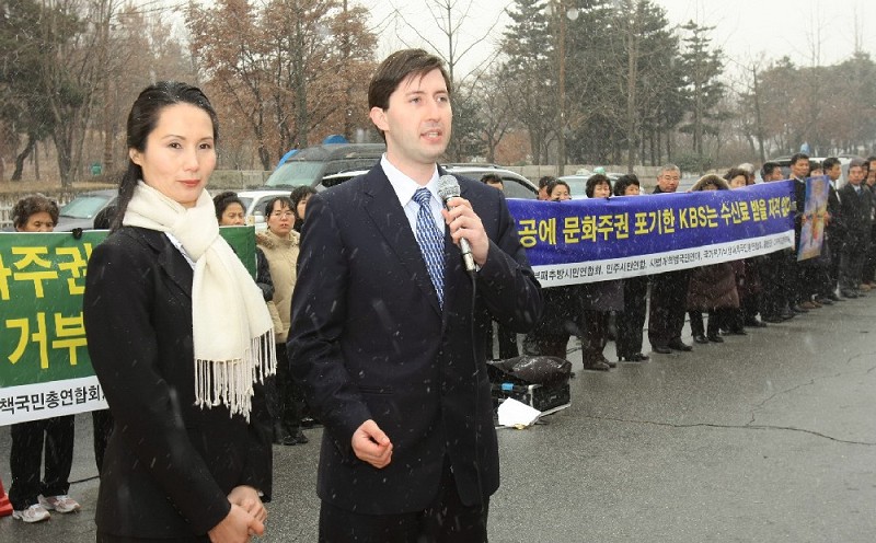 负责神韵纽约艺术团来韩演出的韩国法轮大法学会代表,在KBS总馆记者招待会上指出:“现在KBS屈服中国大使馆的压力取消神韵演出的话,将会对韩美同盟留下污点。”